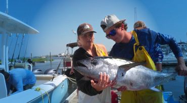 Capt. Jake Kline travels offshore with his friends to tuna fish. Visiting friend from Hawaii, Taylor, hooks her first tuna and is ecstatic back at the dock. As the crowd observes, Capt. Jake carves quarters and beautiful fillets.